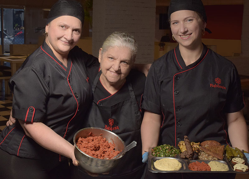 La Bandeja Babilonia, la creó la abuela Amalia, para que los clientes pudieran probar “un poquito de todo”, el arroz con lentejas y su topping de cebollas fritas, el tabule fresco, los kibbeh, amasados como los hacía Amalia hace décadas; los pinchos al grill, las cremas batidas en los tiempos exactos, los tabaquitos con el sabor en su punto, el pan árabe que no puede faltar, y la buena compañía del delicioso té de la casa.